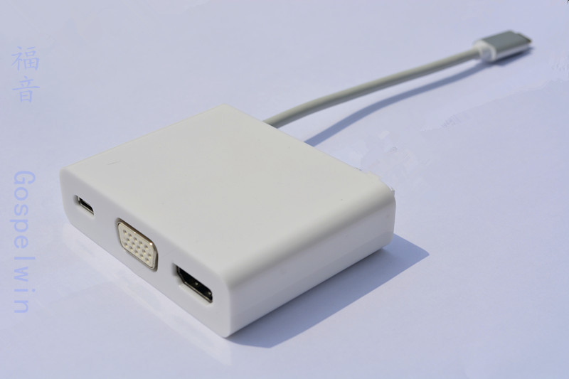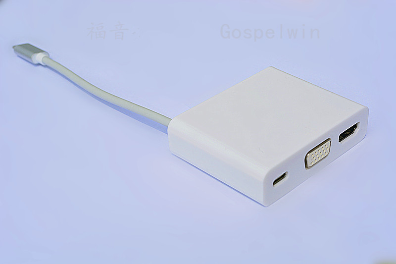 采用Type-C转USB 3.0-A+HDMI+VGA+Type-C四种接口,数据传输、充电、视频输出、投影一次解决。