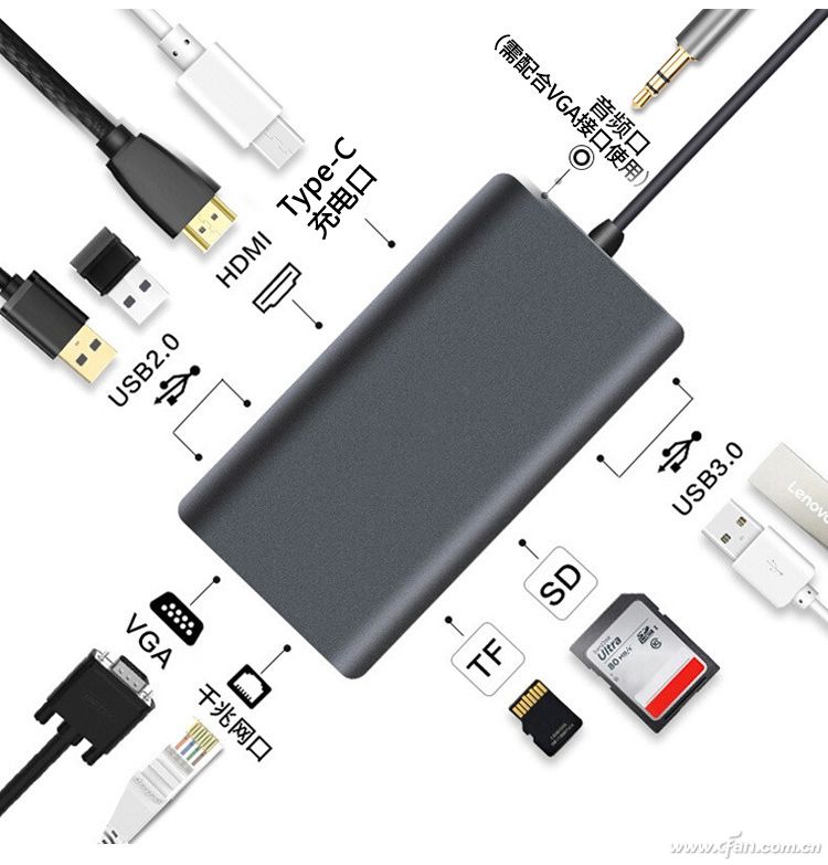 数据型的USB Type-C接口可以搭配纯USB Hub扩展出更多USB、网线接口或读卡器