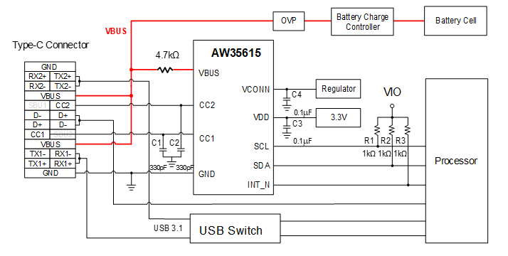 支持VBUS检测与放电控制功能,可以避免VBUS电腐蚀老化损耗