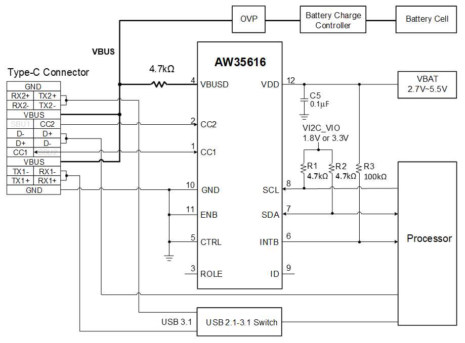 艾为针对该类型应用场景,推出AW35616系列芯片,其主要功能特点如下: