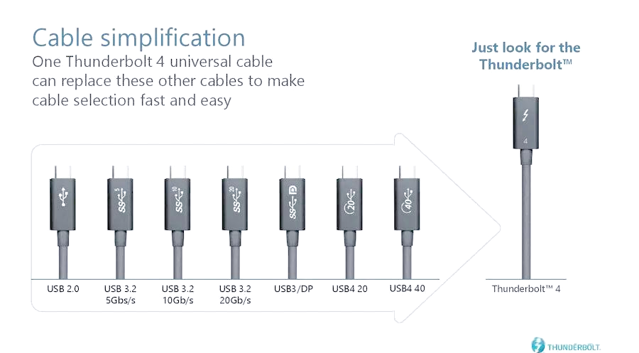 综上所述,USB4与雷电4可视为实力相当的竞争对手。雷电4,作为“全功能满血USB4”,不仅提供40Gbps的满速传输,还兼容USB PD充电和原雷电3的全部功能。在视频输出能力(支持双4K显示器)、配套线缆以及安全等方面,雷电4都设定了更高的认证标准。尽管目前雷电4主要配置在高端产品上,普及度尚未超越USB4,但未来谁又能预料呢?